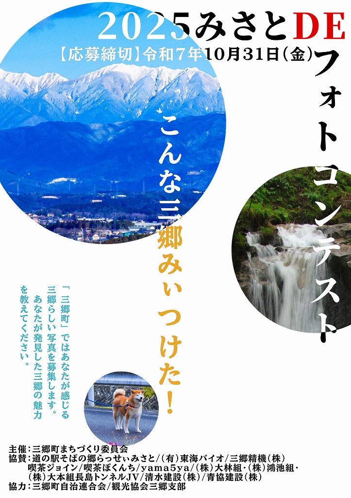三郷町まちづくり委員会による「みさとDEフォトコンテスト」を実施します。三郷町の人・伝統文化・風景などを題材として、まだ知らない三郷町の魅力を発見し、たくさんの方々に「みさと」をもっと知ってもらう、そんな作品を募集します。
