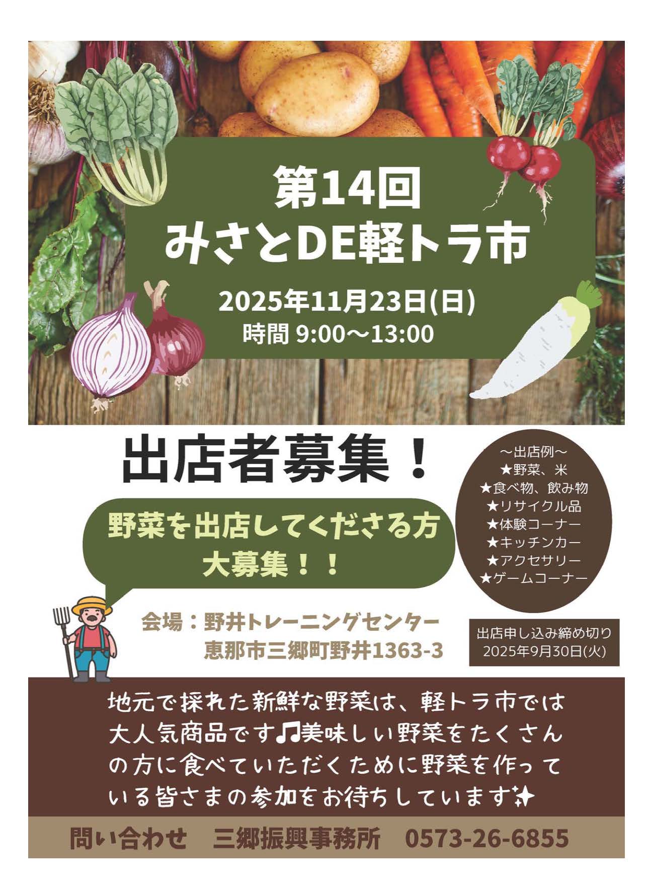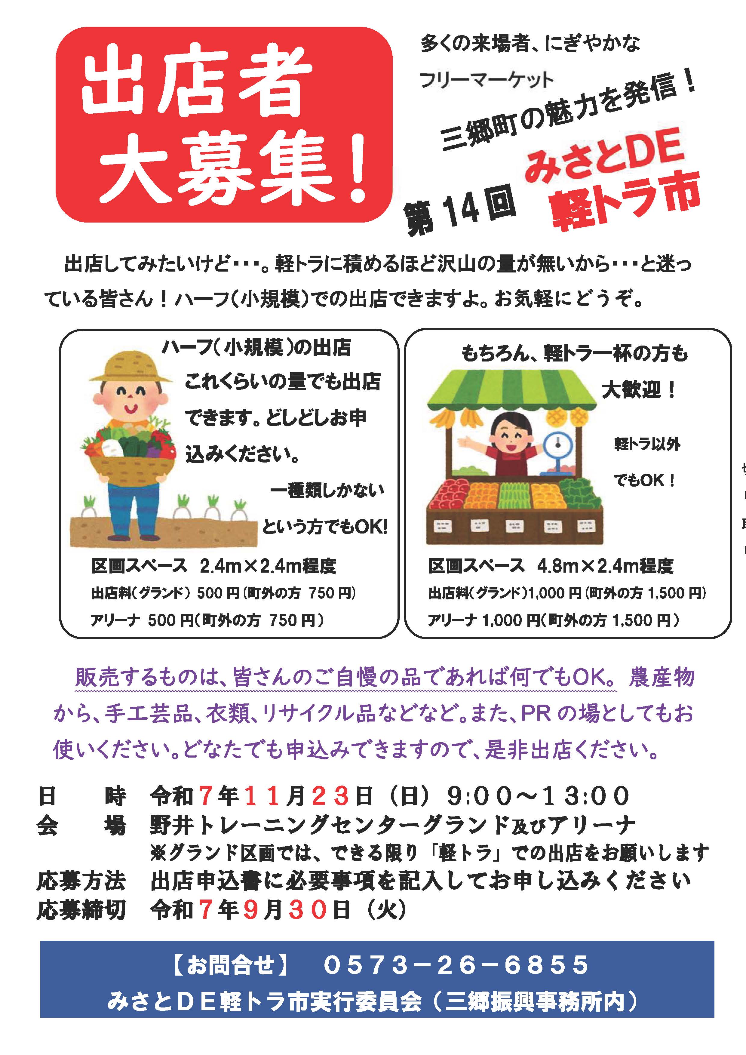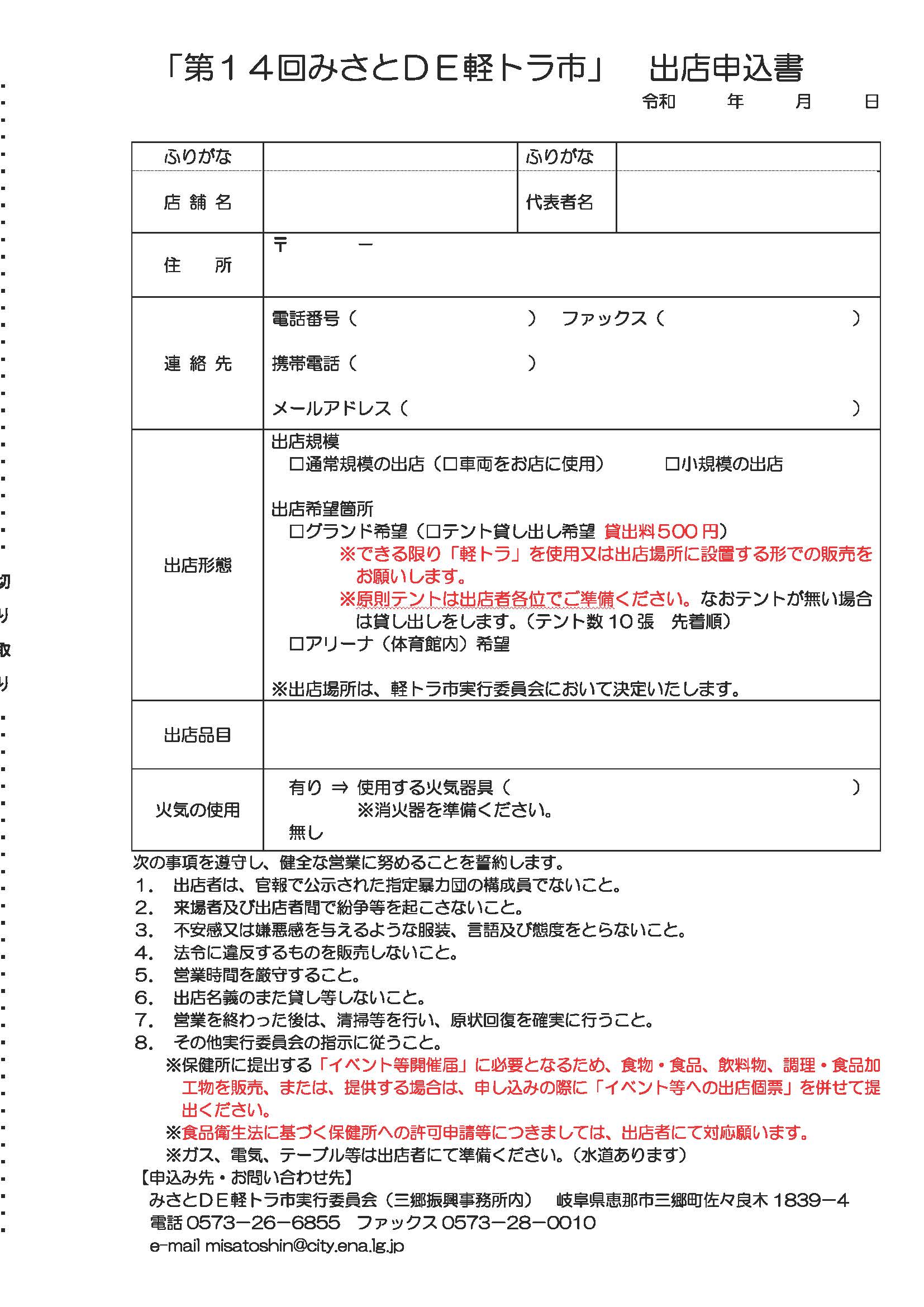 「第14回みさとDE軽トラ市」出店申込書の様式は、こちらから。